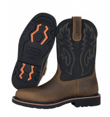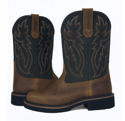 Style: Pull-on cowboy or work boot with a broad square toe.